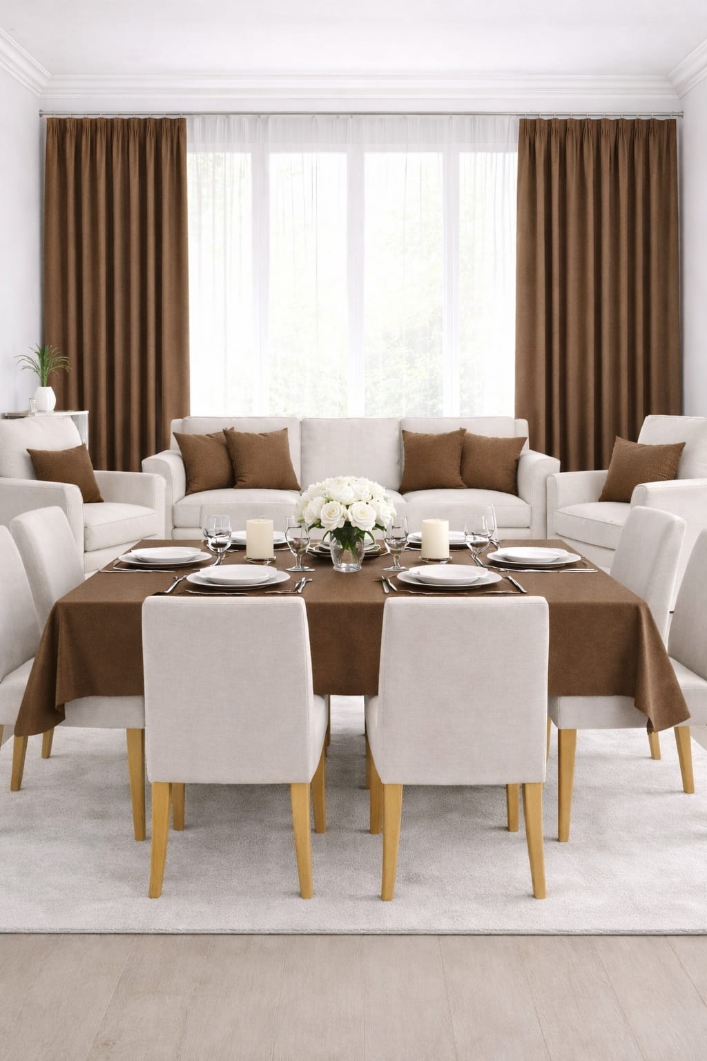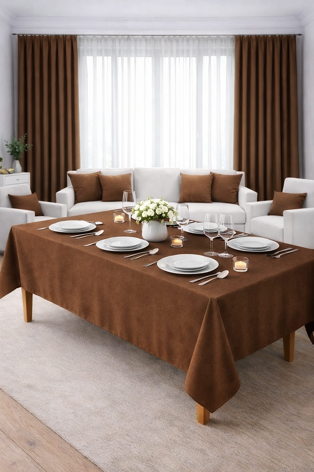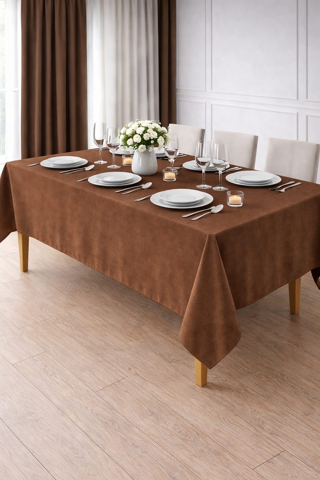 PerdeYap Kadife Dokulu Açık Kahverengi Masa Örtüsü