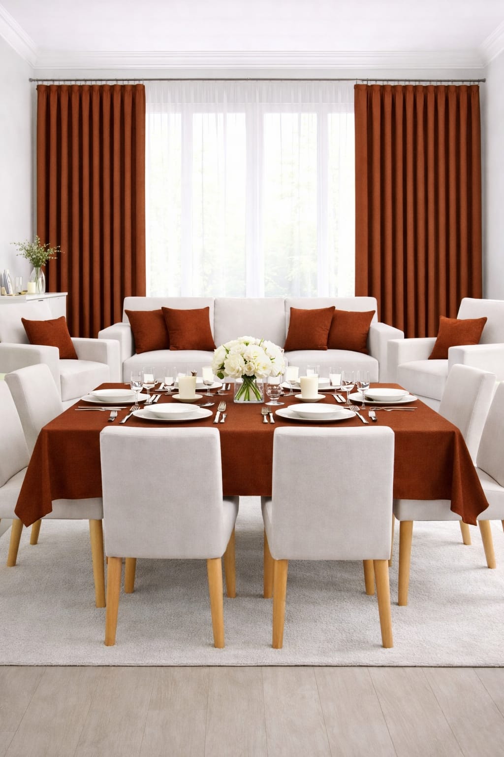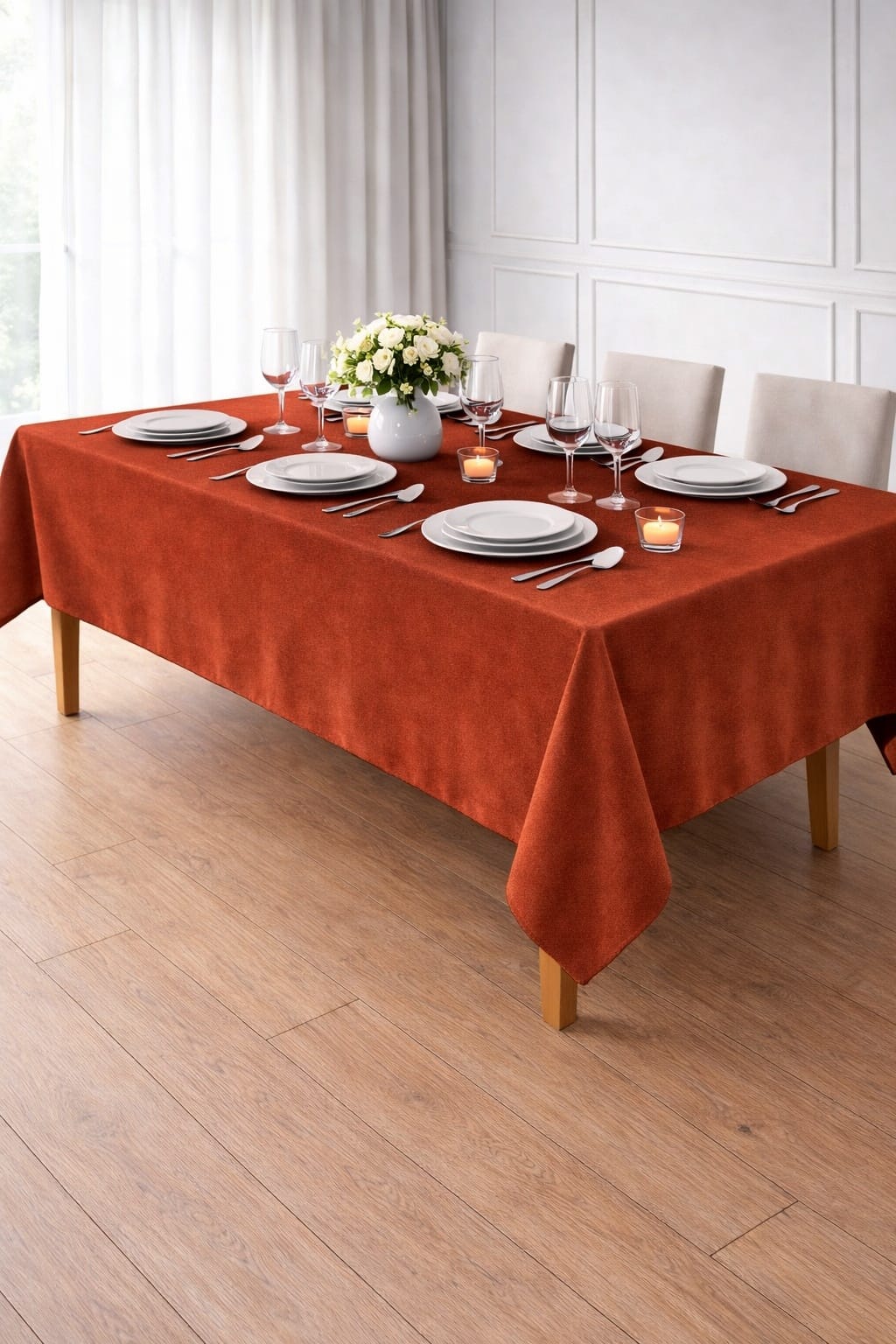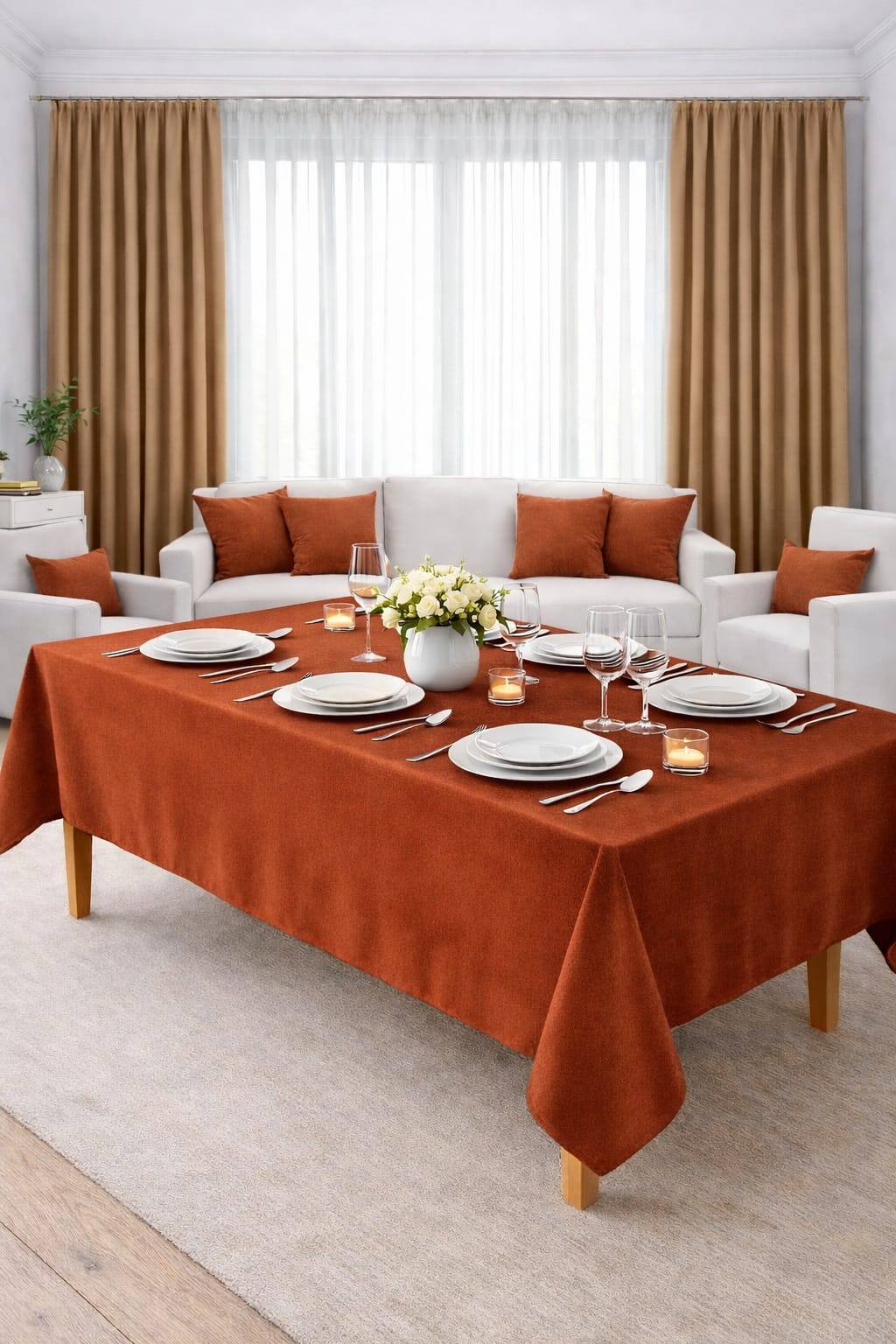PerdeYap Kadife Dokulu Kiremit Renk Masa Örtüsü